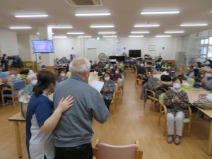 ★五分間体操★2020年05月12日デイサービス遊では、帰りのあいさつの前に、五分間体操を行っております。椅子に座った体操で軽く体を動かした後に、歌に合わせて足踏みをします。毎週歌う曲を変えますが、今週は「赤いリンゴ」を利用者様に歌っていただきながら足踏みを行いました。みなさん、五分間体操を楽しみにしており、大変盛り上がっていただいております♪